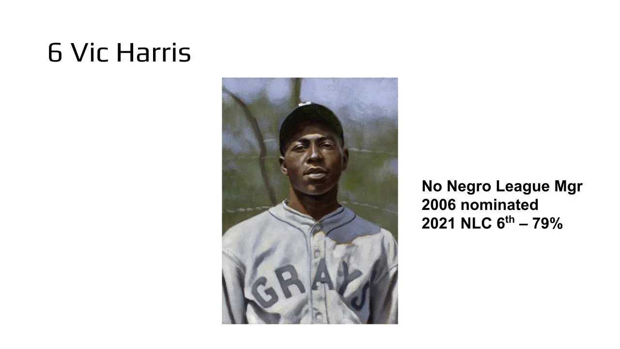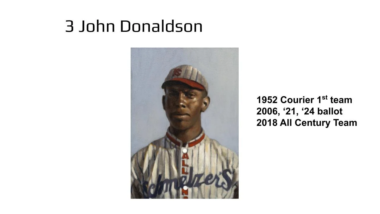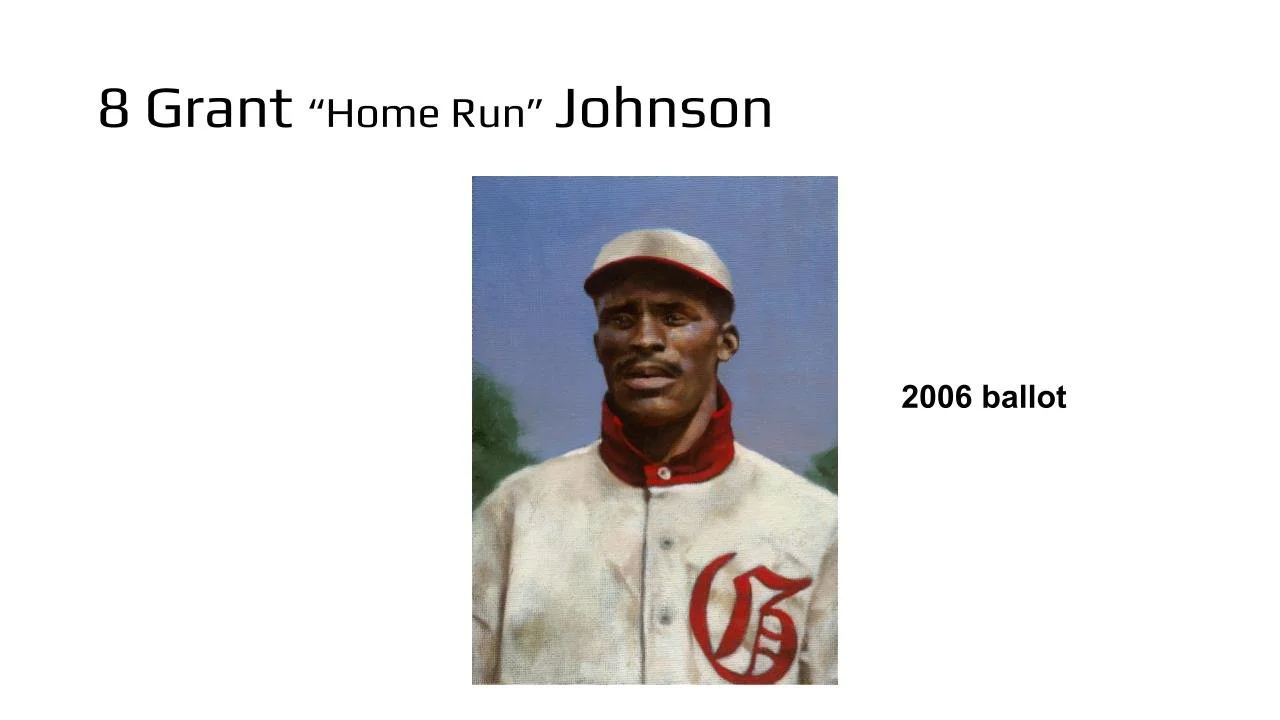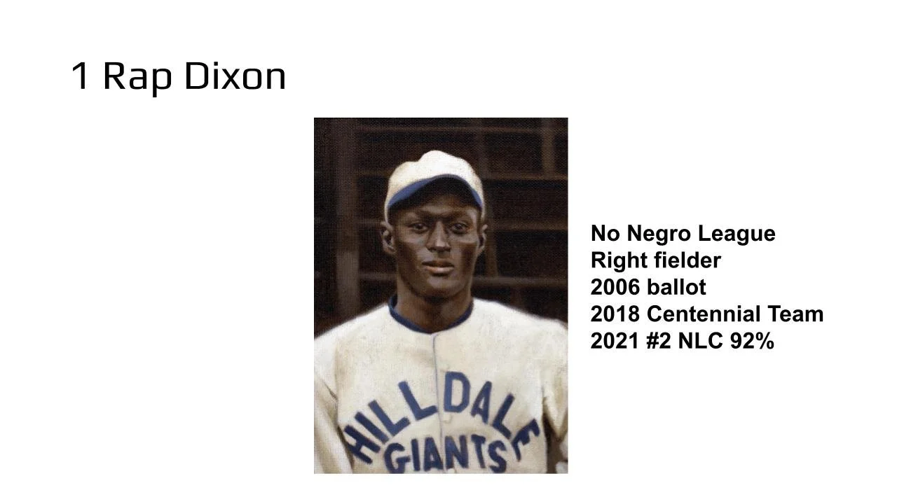 Popular deserving major leaguers like Luis Tiant, Ken Boyer, Thurman Munson and Tommy John have been finalists. If they are again, then you add the top pre-integration candidate Bill Dahlen and that leaves three spots at the most for Negro Leaguers. Cannonball Dick Redding, John Donaldson, Vic Harris and Grant "Home Run" Johnson have been finalists in this format.
