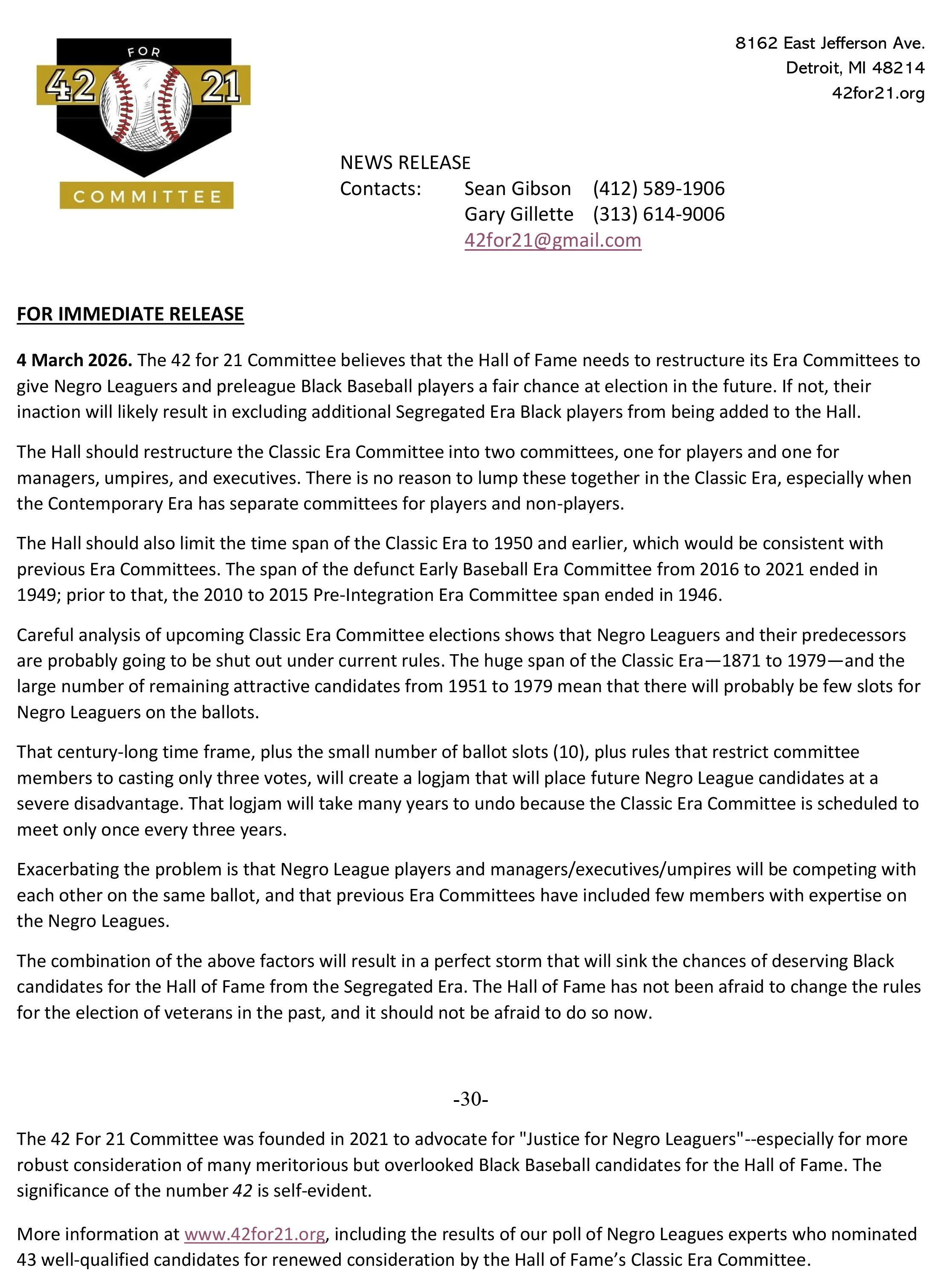 We are pleased to affirm our commitment to this endeavor by re-establishing the 42 for 21 initiative that was started several years ago with this very purpose in mind. We acknowledge that the work is not finished and draw your attention to the resources we have posted on this website to renew the campaign, seek greater awareness and support, and ultimately, fulfill our vision that sees all those Negro Leaguers—players, managers, executives, and umpires—who are worthy of the Hall therein enshrined.